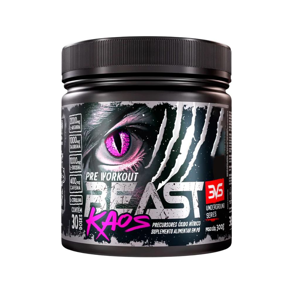 O BEAST KAOS é um suplemento Pré Treino ultra concentrado, composto por 8 ingredientes: