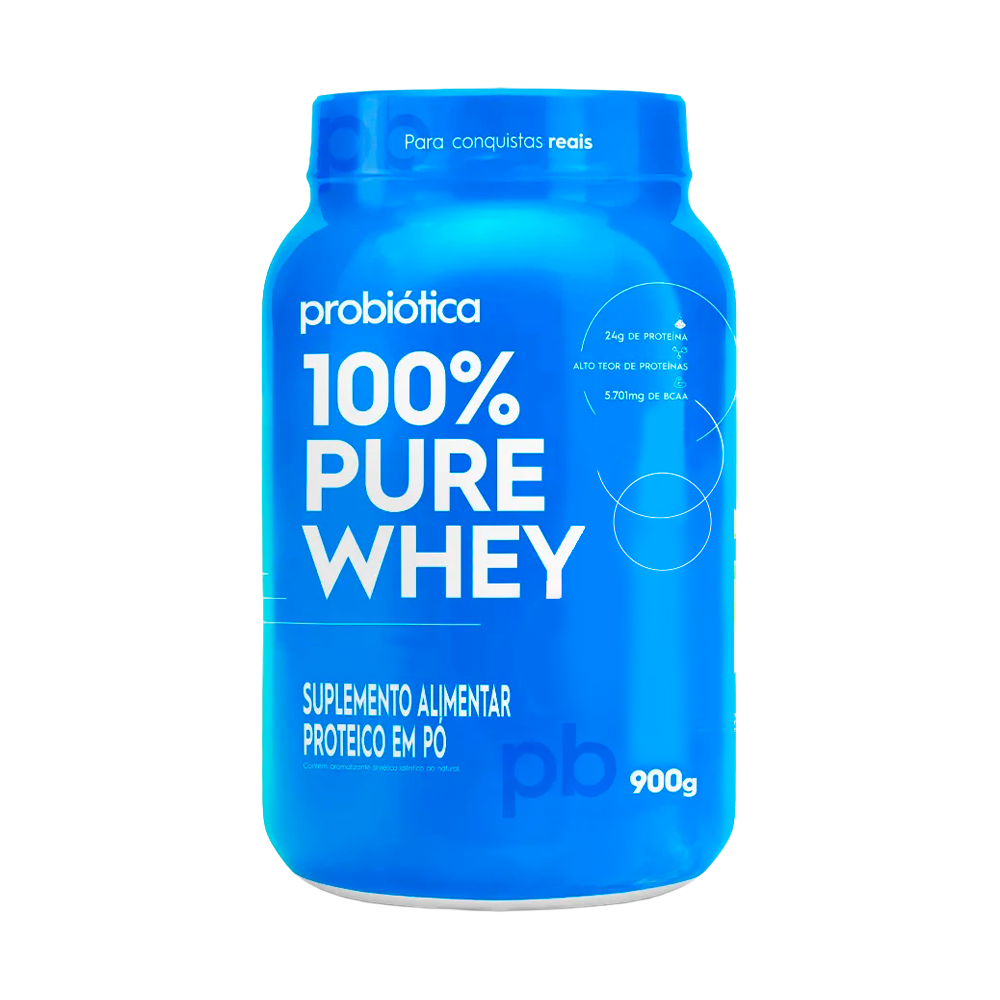 100% PURE WHEY (Pote) ® é o suplemento proteico campeão de vendas Probiótica, composto basicamente por proteína concentrada do soro do leite (whey protein concentrate), matéria-prima elaborada com alta tecnologia e com elevada concentração de aminoácidos. De preparo instantâneo, 100% PURE WHEY® é indicado para ser tomado antes e/ou após os exercícios.